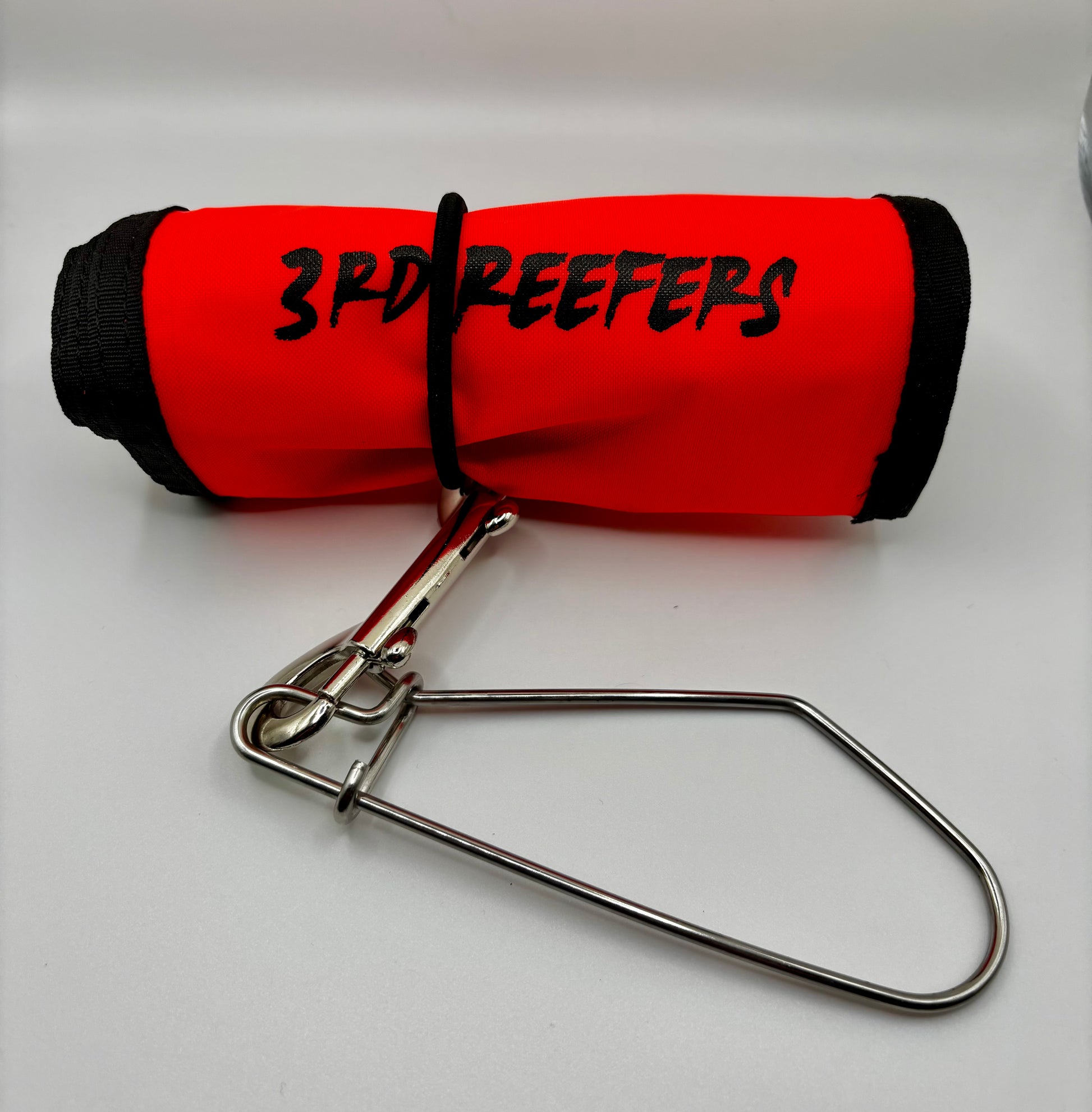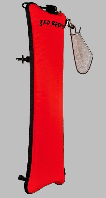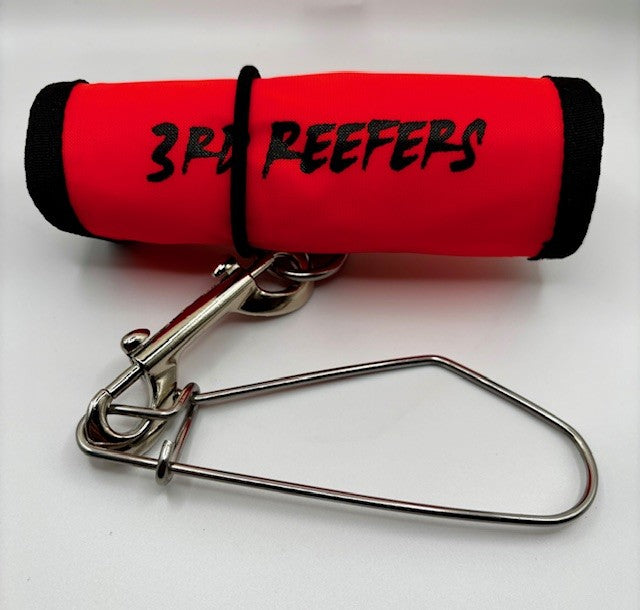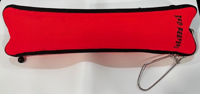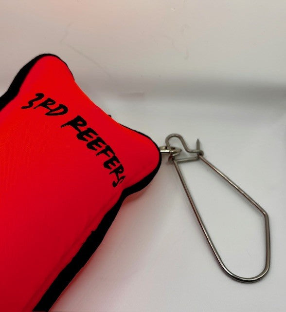 “Don’t let a shark take a bite out of your booty!” While diving we are often fortunate to be able to harvest some of the ocean’s many bounties. Unfortunately this sometimes invites the unwanted attention of some large and insistent creatures. Bring along our low profile, durably constructed “Booty lift” to attach to your catch and send it to the surface for your Dive Boat buddies to retrieve and store for safe keeping. At 6” x 20”, this compact float provides more than enough lift to send up a bag of tasty lobsters, a fat spider crab or a freshly speared grouper. Fashioned out of bright orange nylon fabric this lift is easy to spot on the surface and durable enough to provide season after season of fresh bounty delivery. The lift comes with a 6” stainless steel stringer and a stainless steel double ended clasp for securing to your BCD. A strong bungee cord loop holds the float rolled up for storage while double-stitched nylon webbing holds a stainless steel D-ring to the end of the float. Buy them individually or in packs of 2 or 4 floats for a discount! Extra stringers and double ended clasps are for sale separately.