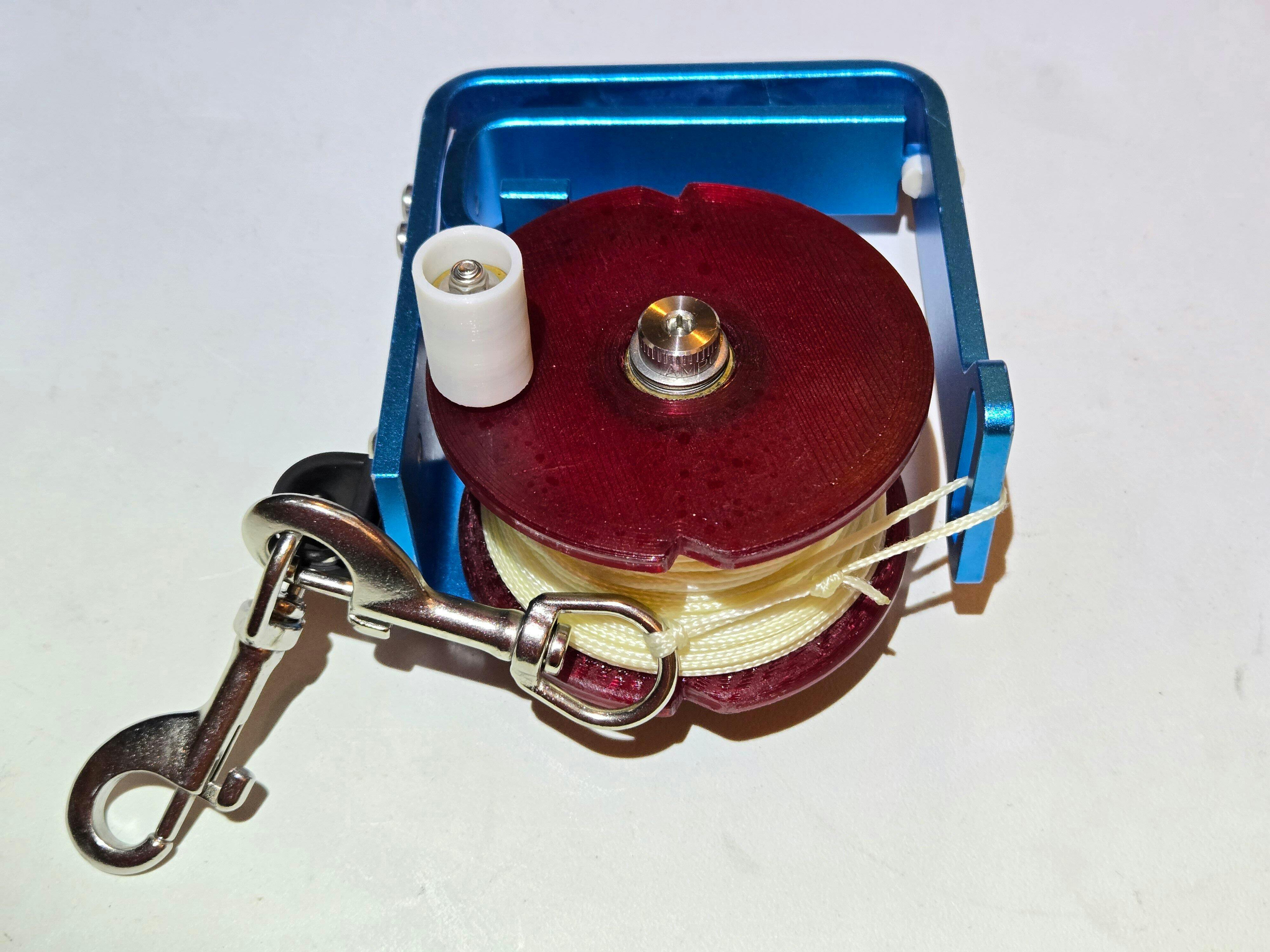 Newly designed advanced scuba reel by Third Reefers brings spring loaded control to your descent to the reef, penetration to a wreck, or exploration into a new branch of the cave system. Expertly crafted out of a heavy gauge aluminum frame, high density polyethylene spool and stainless steel hardware, this reel will last for years of undersea exploration. Easy control of line release is the huge advantage of this innovative spring loaded design. With a gentle squeeze of the handle during descent, line feeds off the spool in a controlled fashion and with release of the pressure on the handle the spool rapidly and securely locks preventing free spooling and line tangles. Each spool comes with 300 feet of line which can be attached to your hardware of choice depending on the specific use. The heavy duty lobster clasp on the side of the frame allows for daisy chaining reels for cave and wreck exploration or for attachment to your BCD via a floating line for your drift dives.